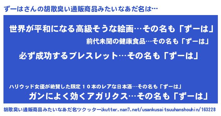 | ヘコむあだ名 | 『ずーにー』『酢こんぶ』『ずーっぺ』 |