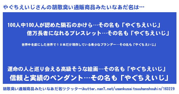 | 意味不明あだ名 | 『住所不定無職やぐちえいじ(91歳)』 |