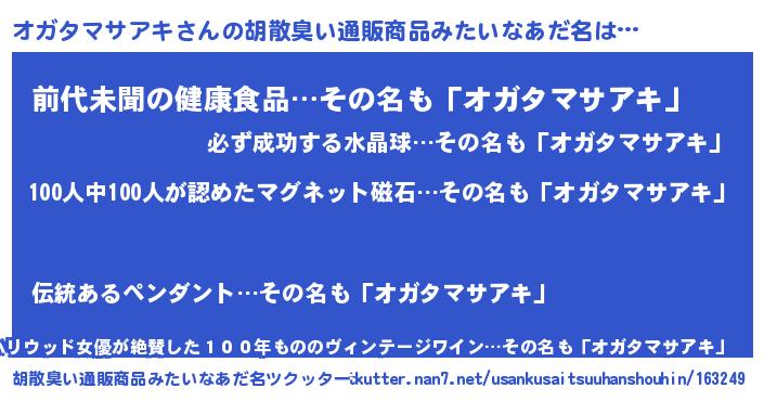 | 可愛いあだ名 | 『オガちゅっちゅ』『オガタマサアキママ』 |