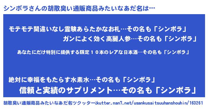 | 意味不明あだ名 | 『住所不定無職シンボラ(65歳)』 |