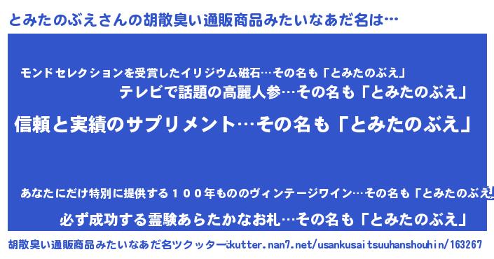 | ヒーロー風カッコイイあだ名 | 『黄金騎士トミ』『スーパートミタノブエ』 |