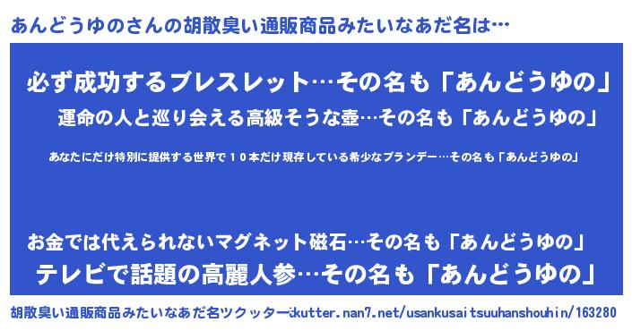 あんどうゆのさんの胡散臭い通販商品みたいなあだ名をツクッター!