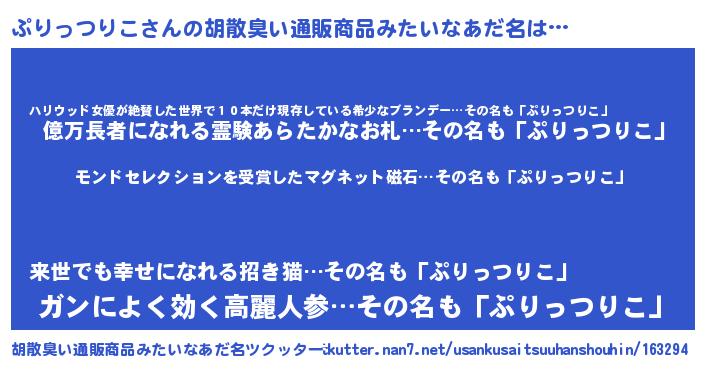 | ヒーロー風カッコイイあだ名 | 『慈愛の使者ぷりっつりこ』 |