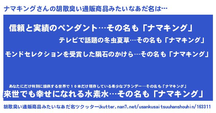 | ヘコむあだ名 | 『ナマっちょ』『ナマキング(小並感)』 |