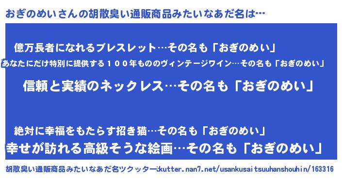 | 欧米人風あだ名 | 『ウサインおぎのめい』 |