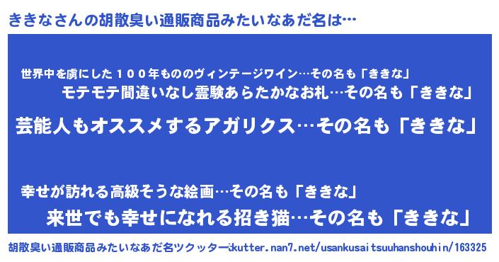 | ヘコむあだ名 | 『ききな(爆)』『ききにー』 |