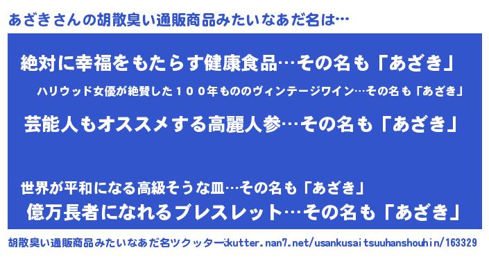 | 意味不明あだ名 | 『自称あざき』『永久保存あざき』 |