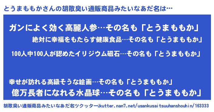 | 欧米人風あだ名 | 『トリンドルとうまももか』 |