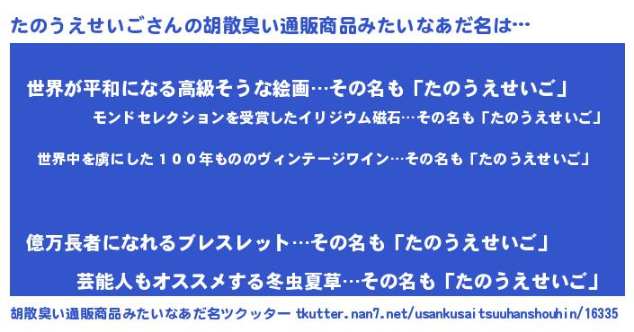 | 意味不明あだ名 | 『住所不定無職たのうえせいご(3歳)』 |
