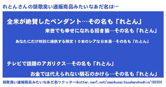 | 意味不明あだ名 | 『住所不定無職れとん(40歳)』 |