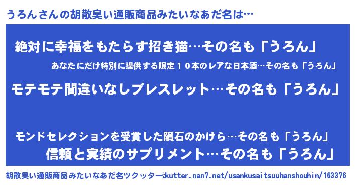 | 欧米人風あだ名 | 『マイケルうろん』『アンジェラ・うろん』 |