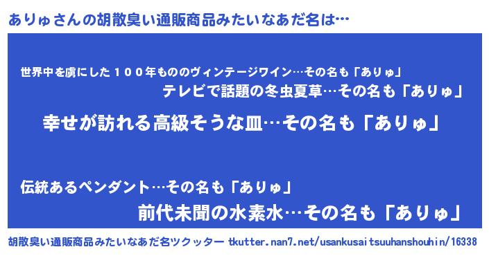 | 意味不明あだ名 | 『ありゅフォーエバー』『永久保存ありゅ』 |