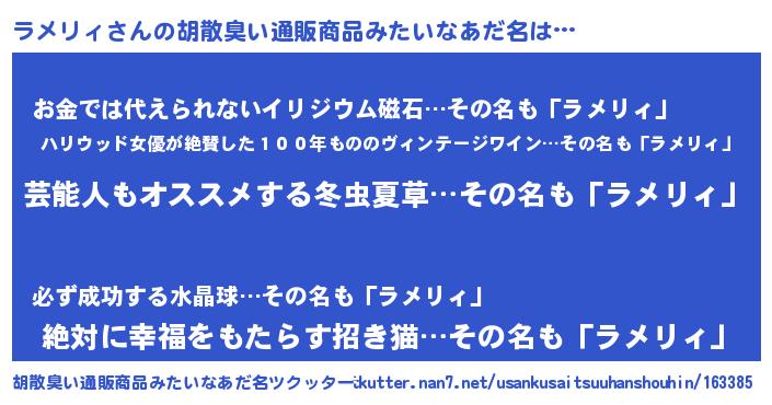 | 意味不明あだ名 | 『自称ラメリィ』『永久保存ラメリィ』 |