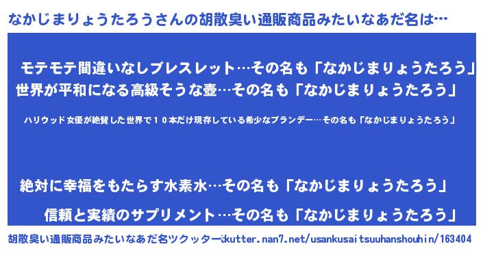 | 伝説のあだ名 | 『伝説のスナイパーなかじまりょうたろう』 |