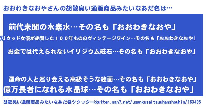 | ヘコむあだ名 | 『おおわきなおや(爆)』『おおもー』 |