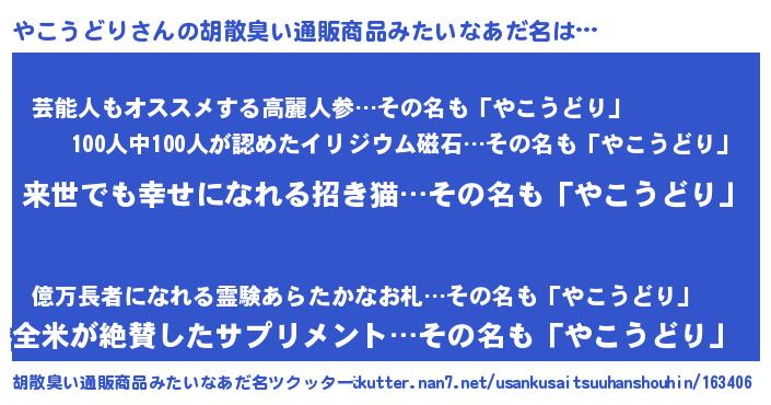 | ヘコむあだ名 | 『やこうどり(小並感)』『やこお』 |