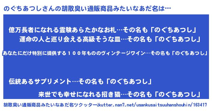| ヘコむあだ名 | 『のぐにー』『のぐちあつし(遠い目)』 |