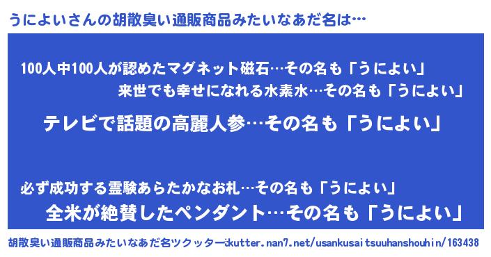 | ヘコむあだ名 | 『うにを』『うによい(笑)』『豆乳』 |