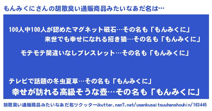| 意味不明あだ名 | 『ペロリンもんみくに』『自称もんみくに』 |
