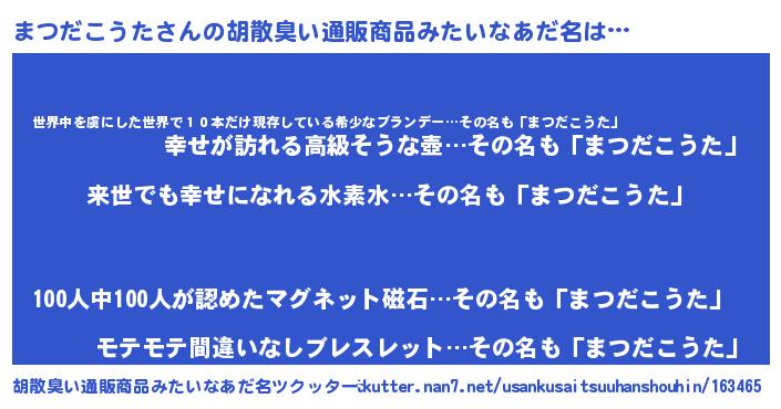 | ヘコむあだ名 | 『まつだこうた(遠い目)』『まつもー』 |