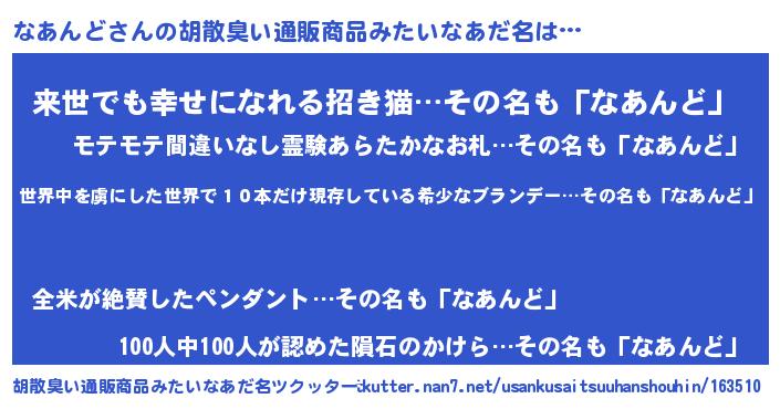 | 意味不明あだ名 | 『住所不定無職なあんど(98歳)』 |