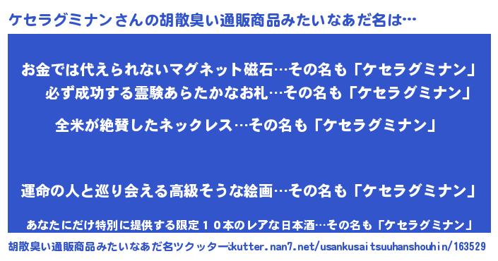 | 肩書あだ名 | 『ケセラグミナンディレクター』 |