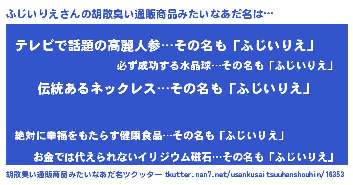 | 意味不明あだ名 | 『とにかく怪しいふじいりえ』 |