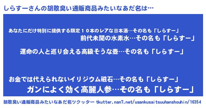 | 意味不明あだ名 | 『しらすーフォーエバー』『自称しらすー』 |