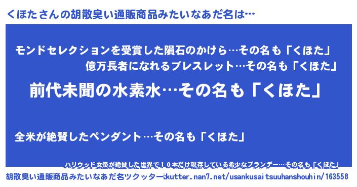 | ヒーロー風カッコイイあだ名 | 『ネオクホタ』『天空の使者くほた』 |