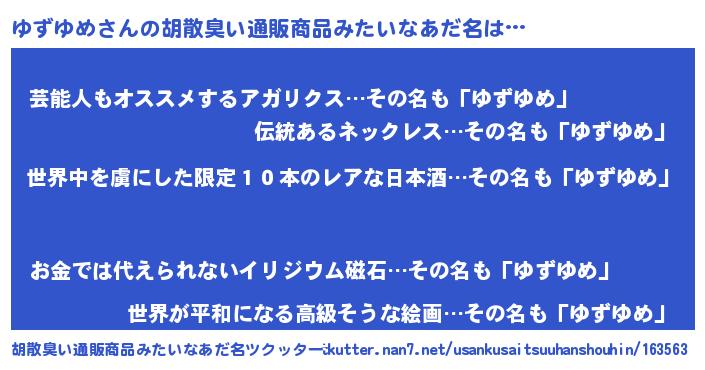 | 意味不明あだ名 | 『住所不定無職ゆずゆめ(40歳)』 |