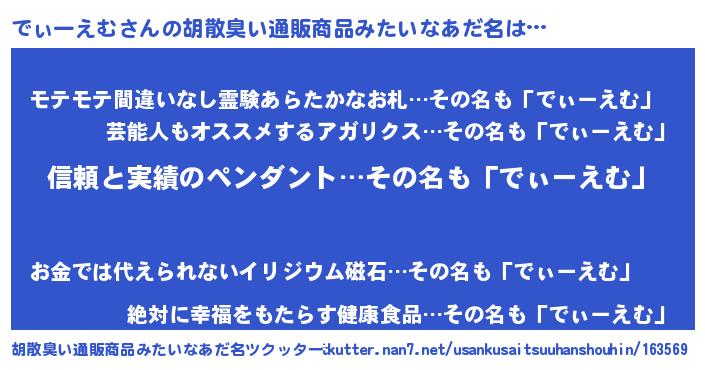 | 意味不明あだ名 | 『とにかく怪しいでぃーえむ』 |