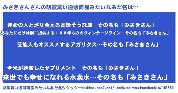 | ヒーロー風カッコイイあだ名 | 『究極戦士ミサキサン』『ネオミサキサン』 |