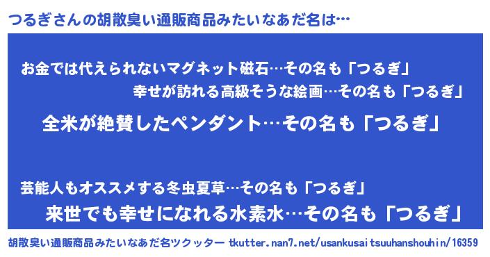 | ヘコむあだ名 | 『つるぷりん』『つるぎ(笑)』 |