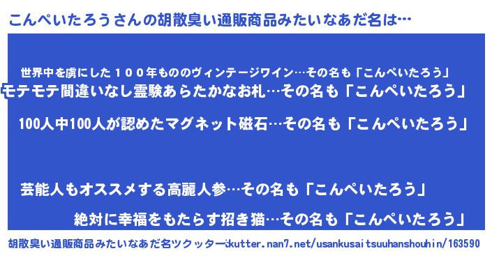 | ヘコむあだ名 | 『こんぺいたろう(小並感)』『こんにゅー』 |