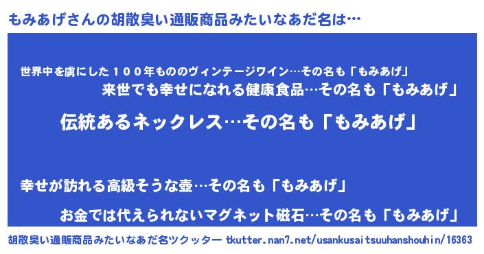 | ヘコむあだ名 | 『もみっぺ』『もみあげ(笑)』 |