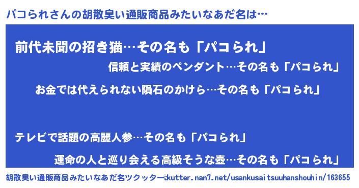 | 女子向けラノベタイトル風あだ名 | 『パコられ恋絵巻』『パコられ伯爵の花嫁』 |