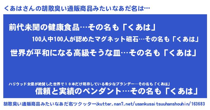| ヘコむあだ名 | 『なまこ酢』『くあは(笑)』 |