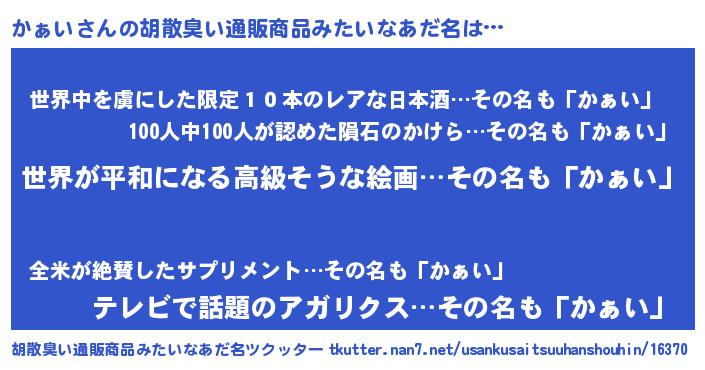 | ヘコむあだ名 | 『なまこ酢』『かぁを』『かぁい(爆)』 |