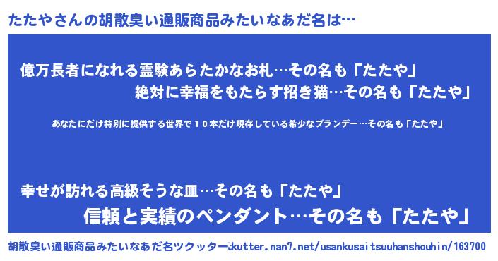 | ヒーロー風カッコイイあだ名 | 『仮面タタダー』『スーパータタヤ』 |