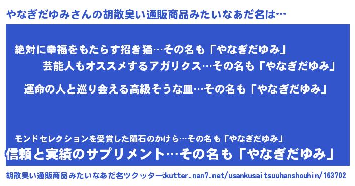 | 意味不明あだ名 | 『やなぎだゆみフォーエバー』 |