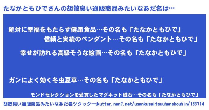 | 意味不明あだ名 | 『たなかともひでフォーエバー』 |