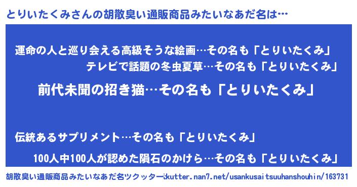 | 意味不明あだ名 | 『永久保存とりいたくみ』 |