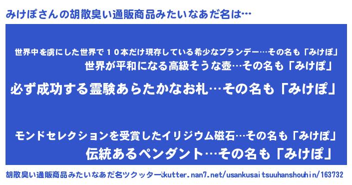 | ヘコむあだ名 | 『みけもー』『みけぷりん』 |
