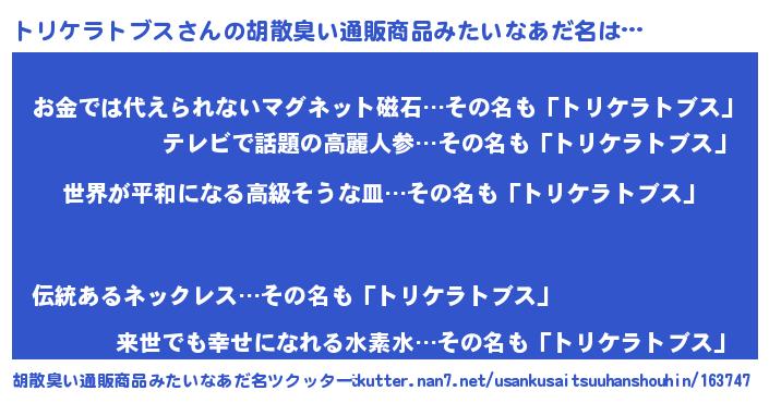 | 欧米人風あだ名 | 『トリケラトブスクリステル』 |