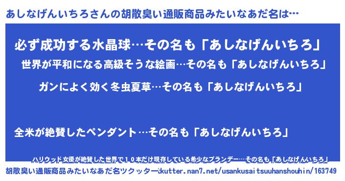あしなげんいちろさんの胡散臭い通販商品みたいなあだ名をツクッター!