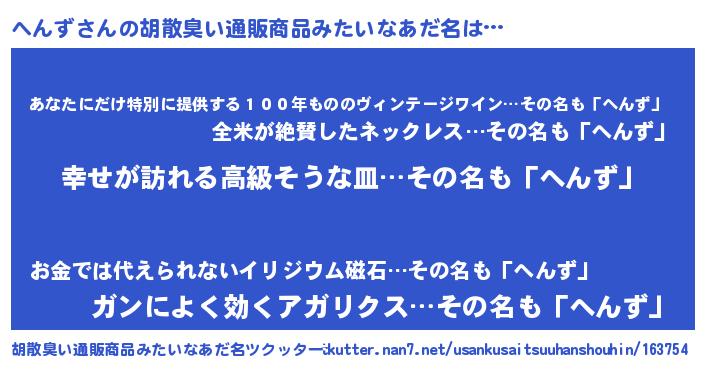 | 意味不明あだ名 | 『へんずフォーエバー』『自称へんず』 |