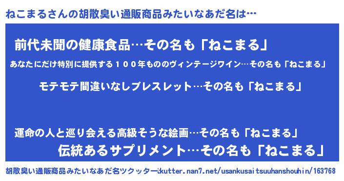 | ヘコむあだ名 | 『ねこにー』『ねこまる(小並感)』 |