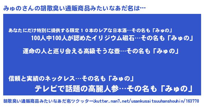 みゅのさんの胡散臭い通販商品みたいなあだ名をツクッター!