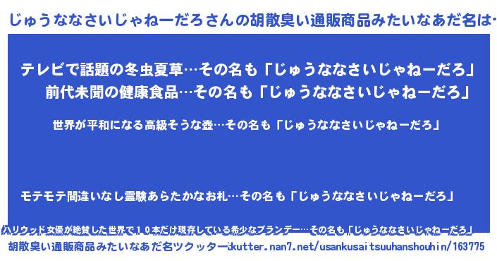 | ヘコむあだ名 | 『なまこ酢』『じゅっふぃ~』 |
