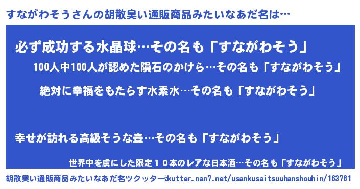 | 意味不明あだ名 | 『永久保存すながわそう』 |